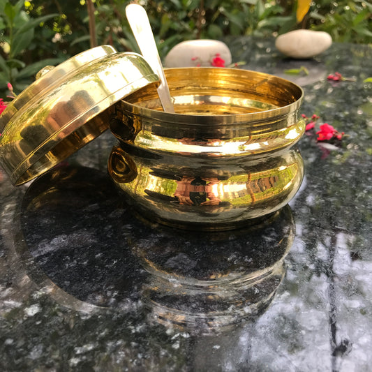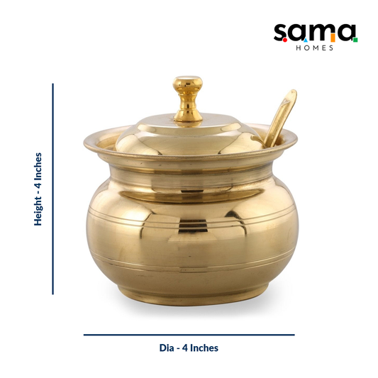Brass Ghee Pot with spoon and Lid | 250 ML Capacity | 4 I...