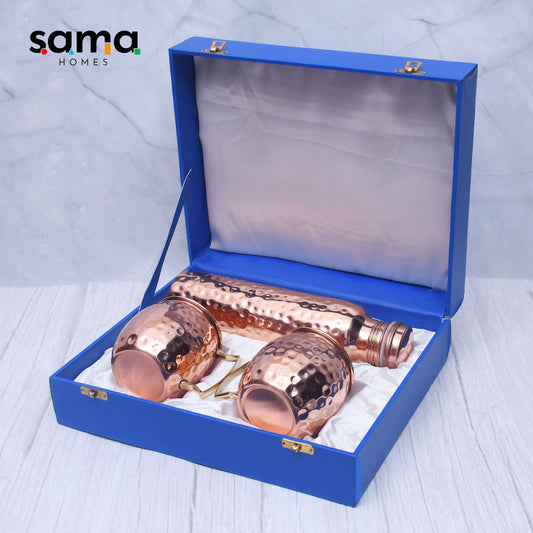 Ayurvedic Copper Water Bottle & Glass Gift Set - 100%...