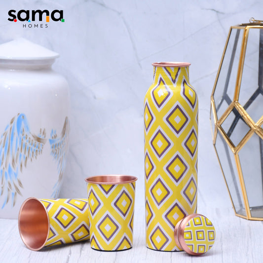 Spiffy Geometric Printed Copper Bottle with 2 Glasses / T...