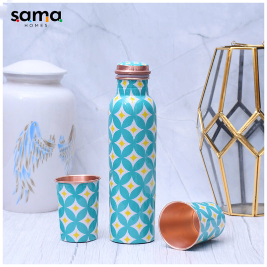 Refreshing Sky Blue Digital Printed Copper Bottle with 2 ...