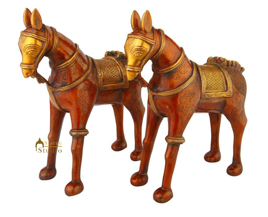 Brass Horse pair showpiece statue hand carved figurine ho...