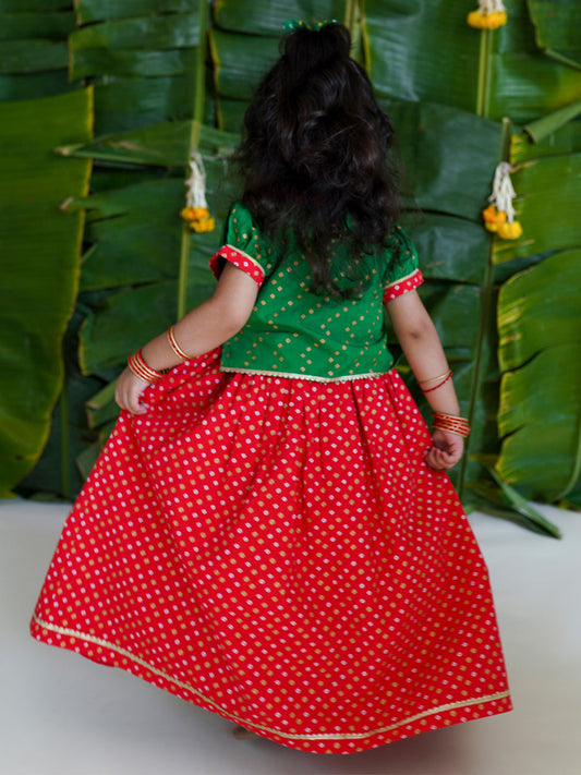 Baby Girl Bandhani Pattu Pavdai-Green