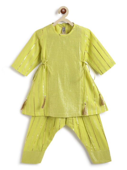 Baby Boy Patola Print Cotton Dhoti Kurta Set - Green