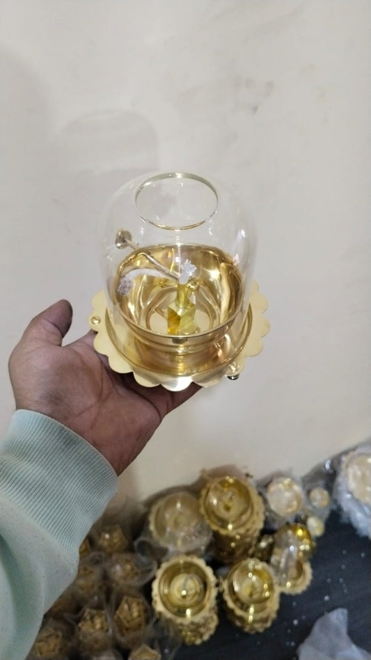 Brass Akhand Diya with Adjustable Bati, with Screw Lever ...