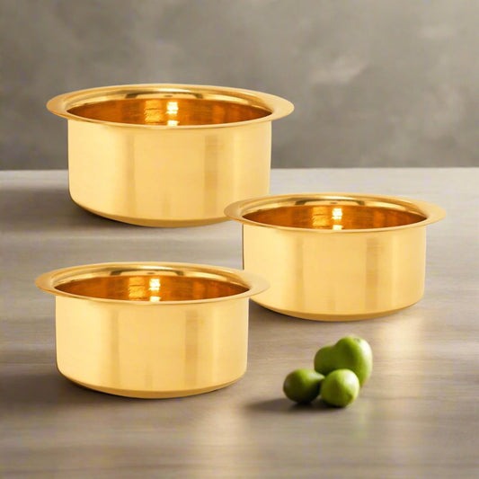 Brass Bhagona Set of 3 Pieces – Traditional Indian Cookwa...