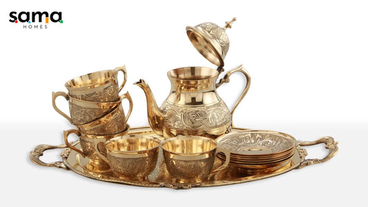 Vintage-Inspired 14-Piece Brass Etched Tea Set | Elegant ...