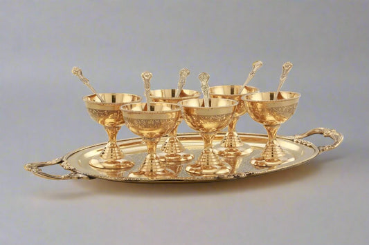 Brass Ice Cream Serving Set | 6 Bowls with Spoon and Serv...