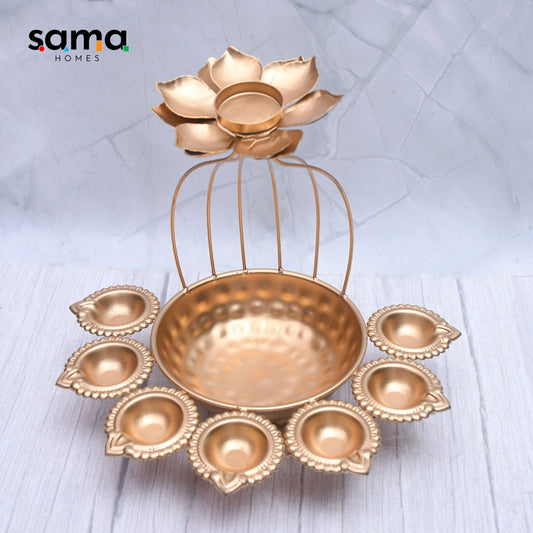 Exclusive Handmade Iron Urli Bowl and Metal Diya Set in L...