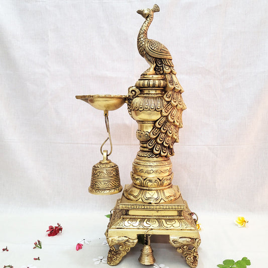 Traditional Brass Peacock Diya 19" for Pooja | Decor...