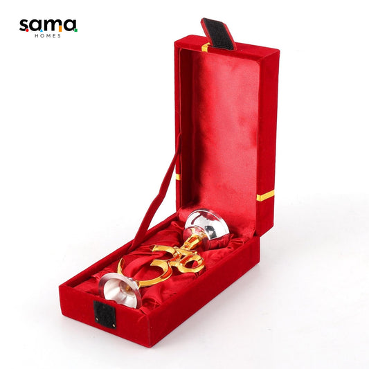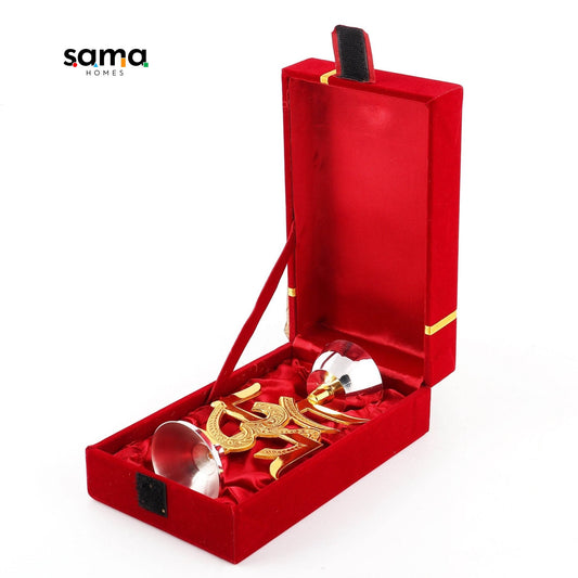 Brass Pooja Set Matte Finish with Velvet Box