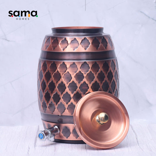Pure Copper Water Dispenser Barrel Mid Etching Designed.