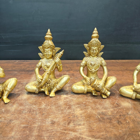 • Brass Turquoise Coral Inlay Musical Set 4 pcs Décor Gift Showpiece Figurine 13"