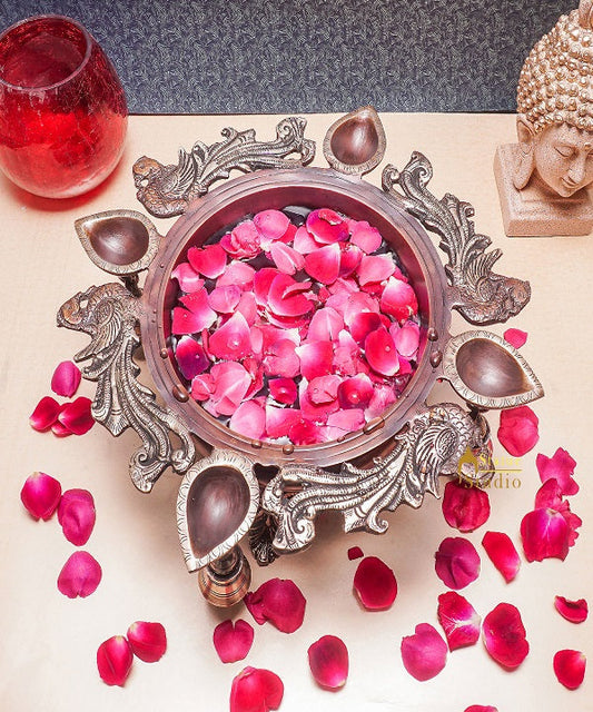 Brass Antique Peacock Urli Bowl Lucky Feng Shui Vastu Hom...