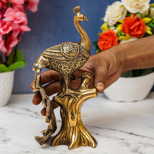 Brass Antique Peacock On Tree Showpiece Decorative For ta...