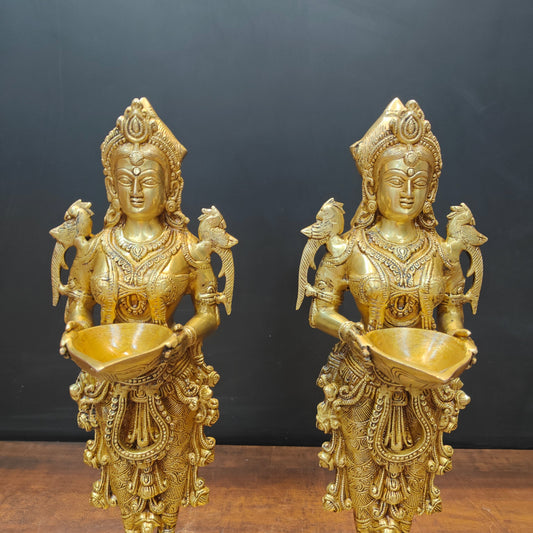 Brass Deeplakshmi Pavaai Vilakku Statue Pair Showpiece Fo...