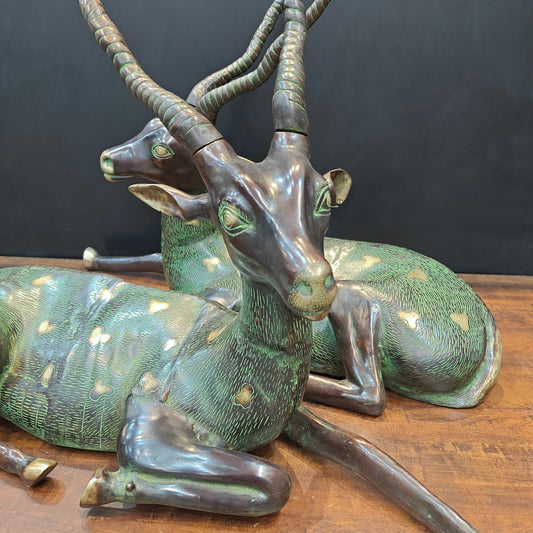 Brass Deer Pair Decorative Showpiece Sculptures 27 Inches