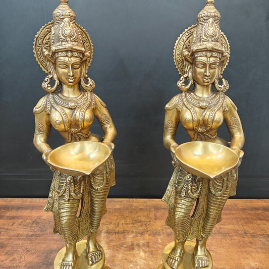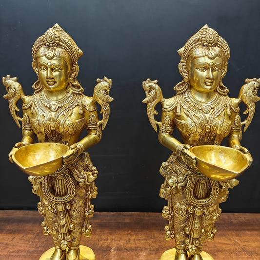Brass Deep Lakshmi Pair Sculpture Showpiece 25 Inch