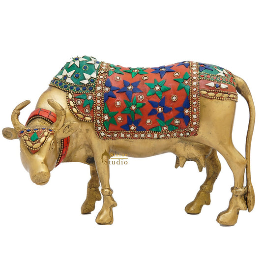 Brass Indian Handicraft Hindu Sacred Holy Cow Turquoise C...