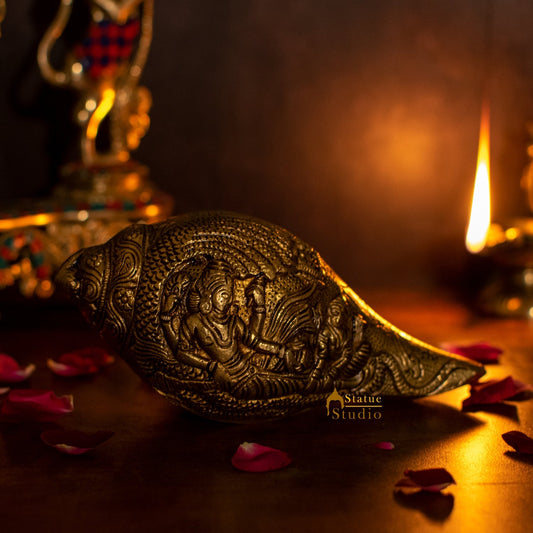 Brass Handcrafted Sculpture Fine Shankh Cooch Vishnu Laks...