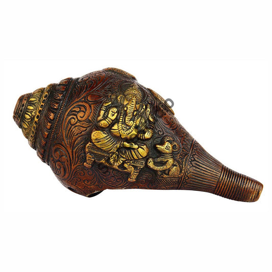 Brass handcrafted sculpture fine shankh cooch ganesha eng...