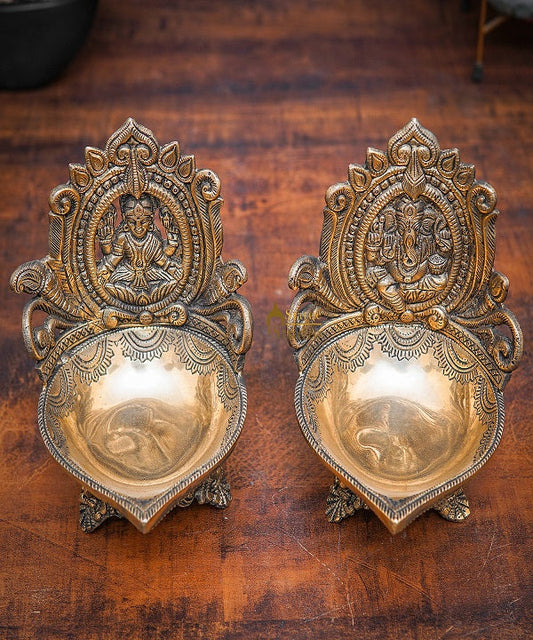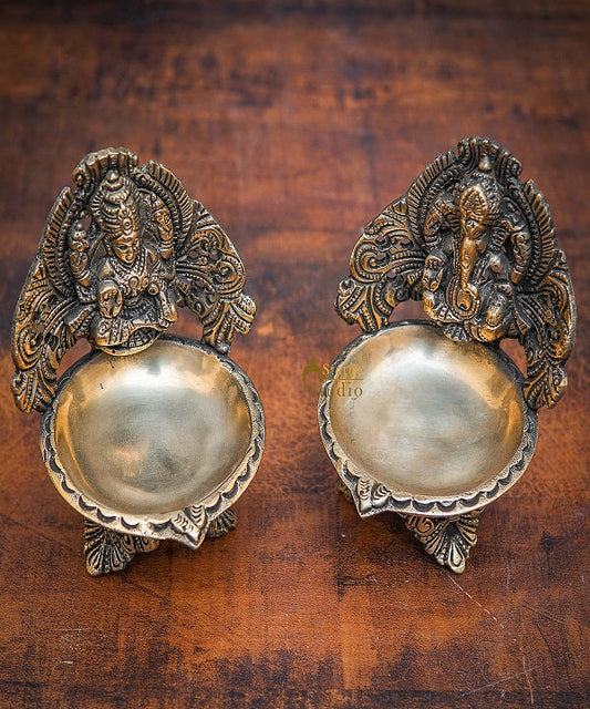 Brass Fine Ganesha Diya Pair For Home Temple Religious De...