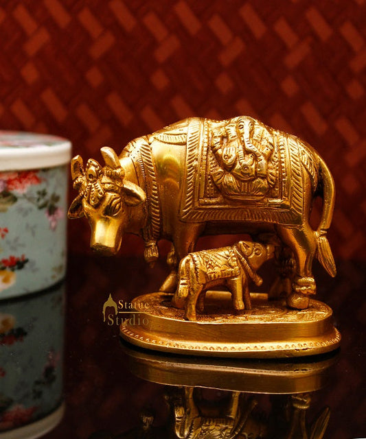 Brass Small Cow With Calf Statue For Religious Home Templ...