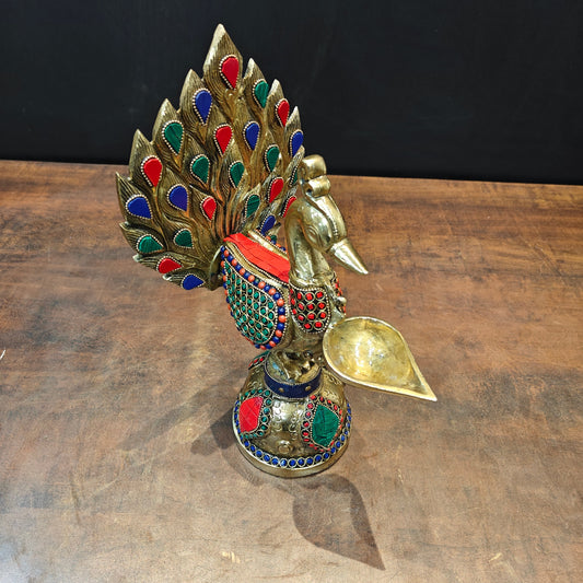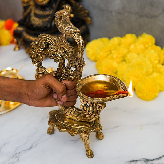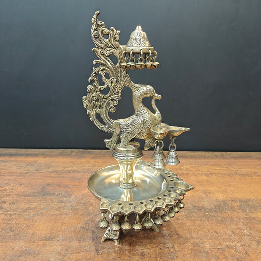 Brass South Indian Style Parrot Bird Diya Diwali Religious Décor Showpiece 11"