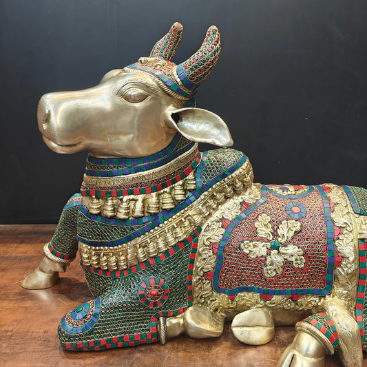 Brass Small Nandi Statue Idol Showpiece Decor 4"
