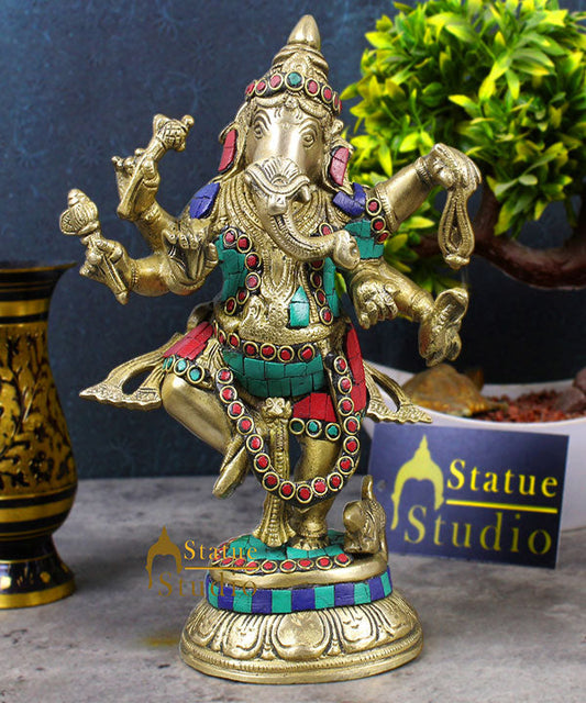 Brass Dancing Ganesha Idol Stone Work For Home decor Show...