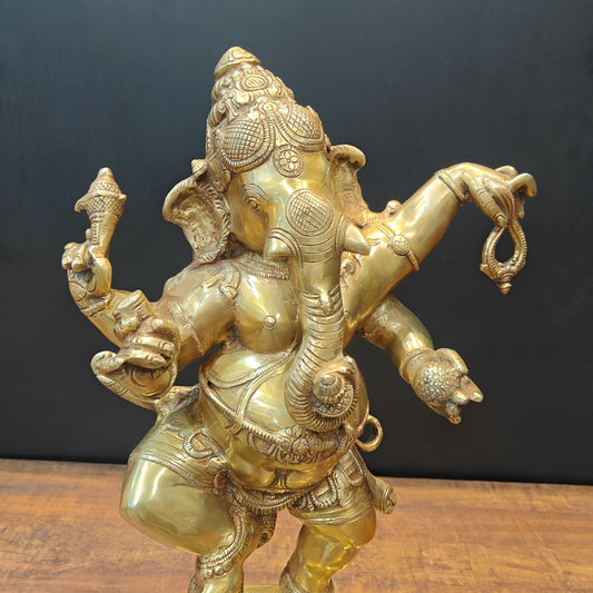 Brass Dancing Ganesha Idol With Base 22 Inches