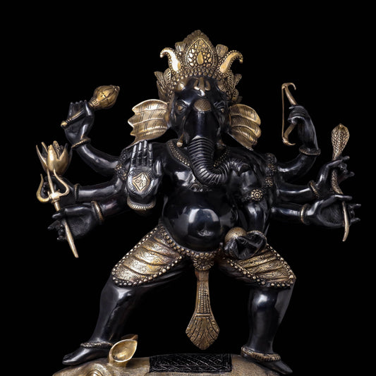 Brass Dancing Ganesha Standing on Ret Black Patina Finish...