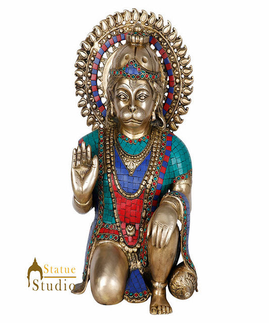Brass Fine Sitting Hanuman Idol Stone Work For Home Decor...