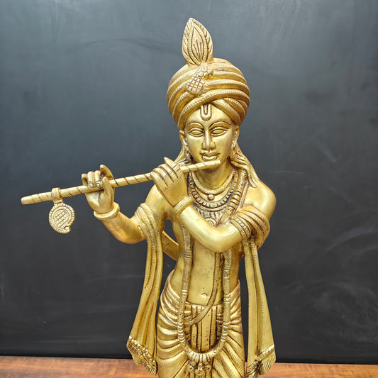 Brass Fine Standing Krishna Idol 2 Feet by StatueStudio