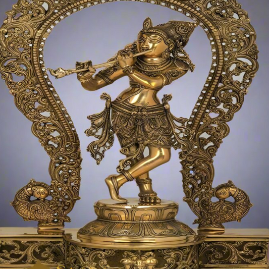 Brass Fine Krishna Idol Standing On Prabhavali Throne 2.5...