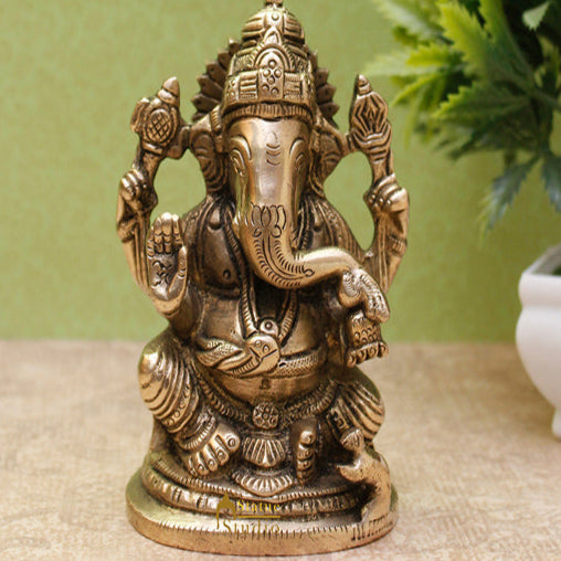 Brass Ganesha Idol For Home Décor Ganpati Statue Lucky Gi...