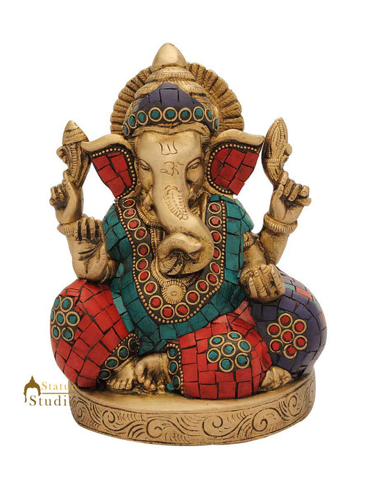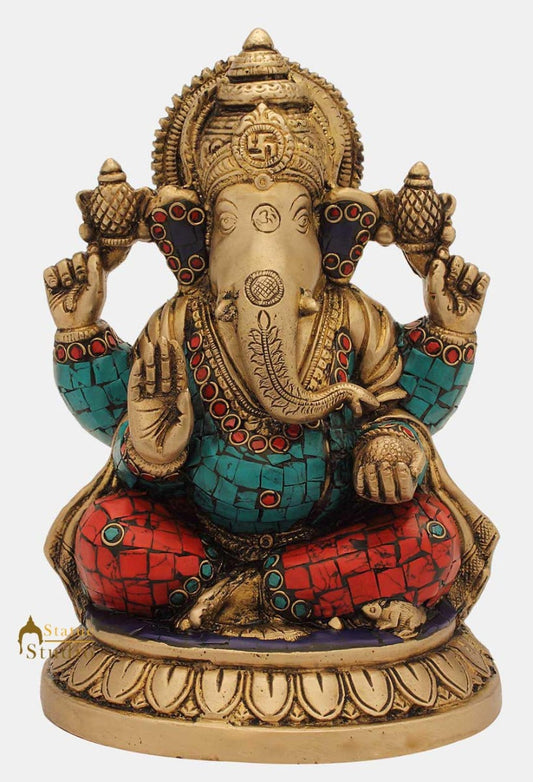 Brass Ganapati Statue Stone Work For Home Decor Gift 13&q...