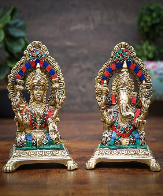 Brass Ganesha Lakshmi Idols For Diwali Decor 6 Inch