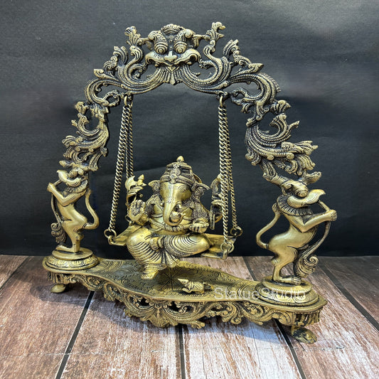Brass Ganesha Jhula Statue Antique Finish For Home Decor ...