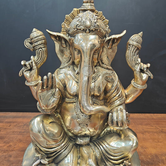 Brass Ganesha Idol Seated On Lotus Base 22 Inches