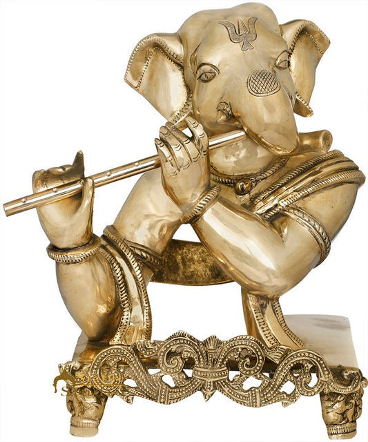 Brass Ganesha Statue With Flute For Home Decor Showpiece ...
