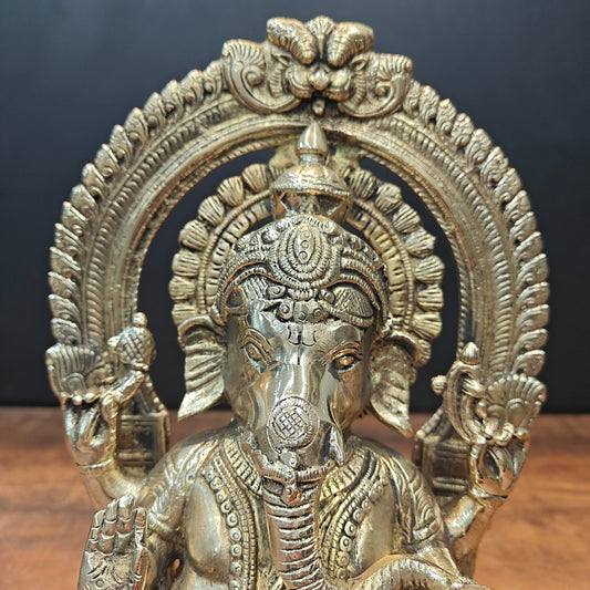 Brass Ganesha Statue With Arch For Home Temple Decor 11.5...