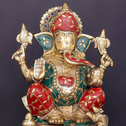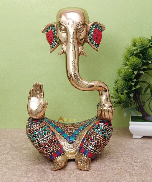 Brass Ganesha Statue Stone Work For Home Decor Showpiece ...