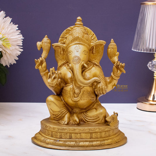 Brass Ganesha Statue Golden Finish For Home Decor 8 Inch