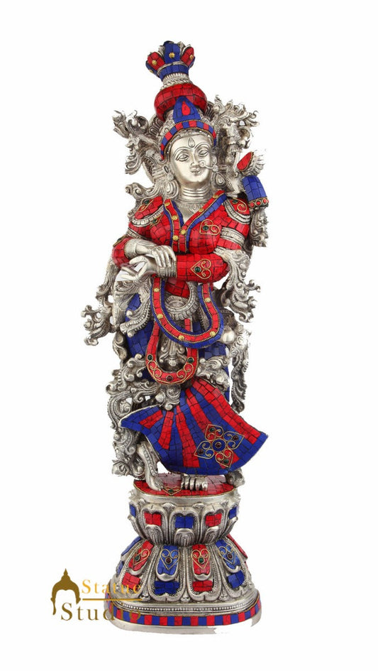 Brass Handicraft Standing Goddess Radha Statue Décor Inla...
