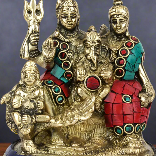 Brass Handmade Lord Shiva Parivar Idol With Stone Work 5 ...