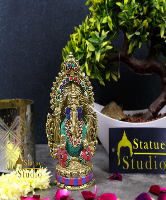 Brass Hindu God Diety Ganpati Murti Religious Décor 12"