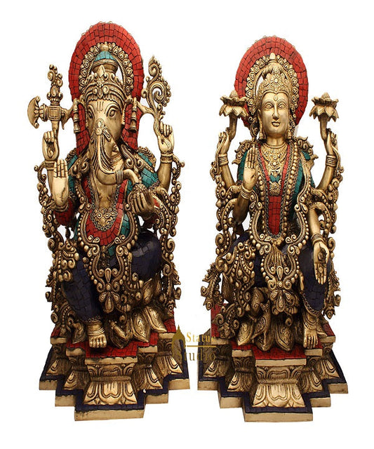 Brass hindu god goddess ganesh laxmi idol diwali figure r...