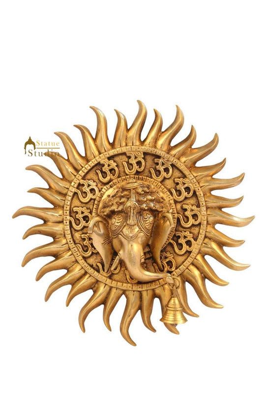 Brass hindu god lord ganesha om sun mask wall décor remov...