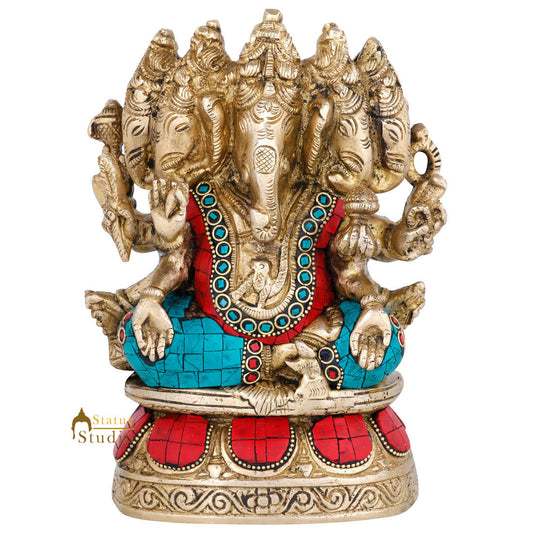 Brass Inlay Panchmukhi Ganpati Statue Ganesha Décor Gift ...