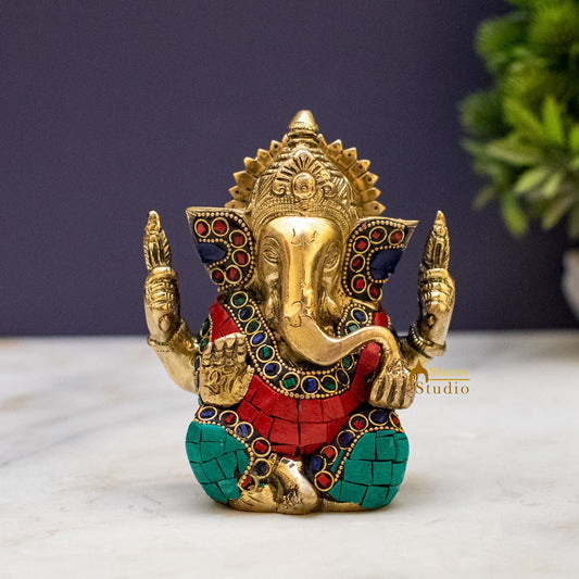 Brass Inlay Fine Ganpati Murti Lucky Corporate Décor Gift...